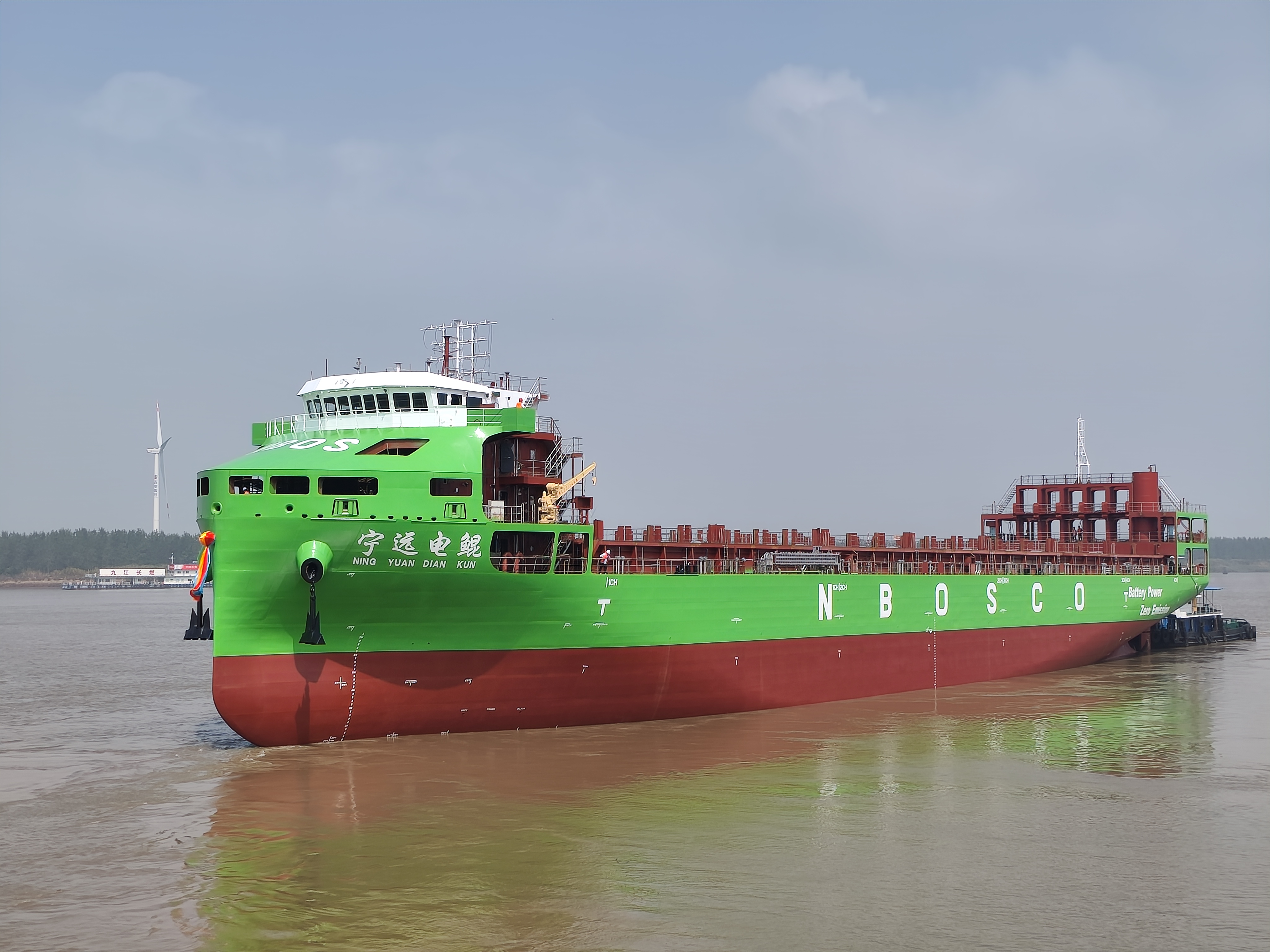 9月29日,全球最大、国内首艘纯电动集装箱船在江西湖口成功下水。该船由江西江新造船为宁波远洋运输公司建造,长127.8米、型宽21.6米、型深10.5米、设计吃水6.2米,可装载742标准箱,是我国首制万吨级纯电动智能海船。它的下水标志着我国沿海集装箱运输正式进入零排放、纯电动时代。