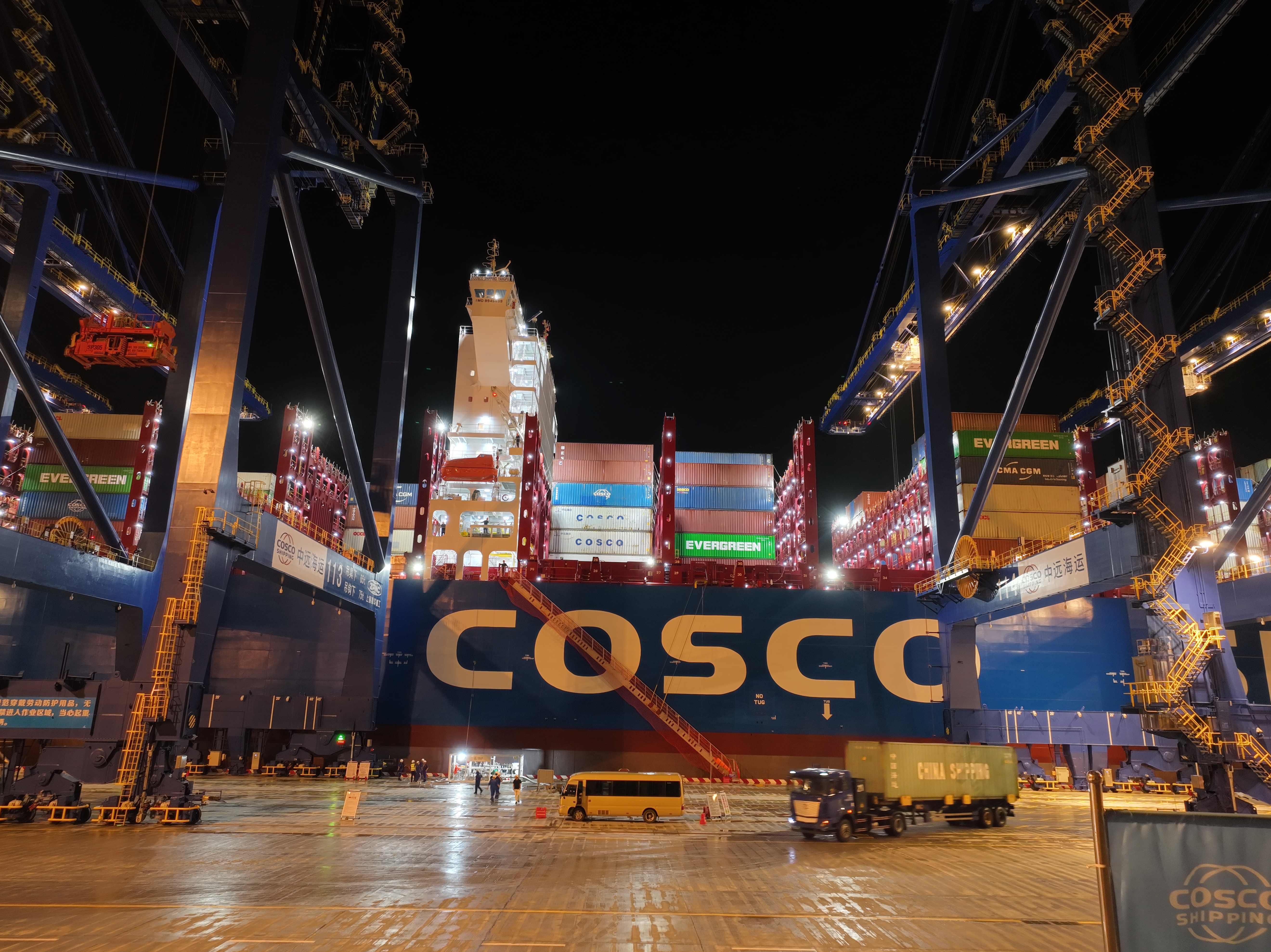 “中远海运洋浦”轮,是由中远海运集团所属扬州中远海运重工有限公司建造的国内首制甲醇双燃料集装箱船,船舶总长366米、型宽51米,最大装箱量达16136TEU,并由中远海运集运投运于洋浦港美洲航线。
